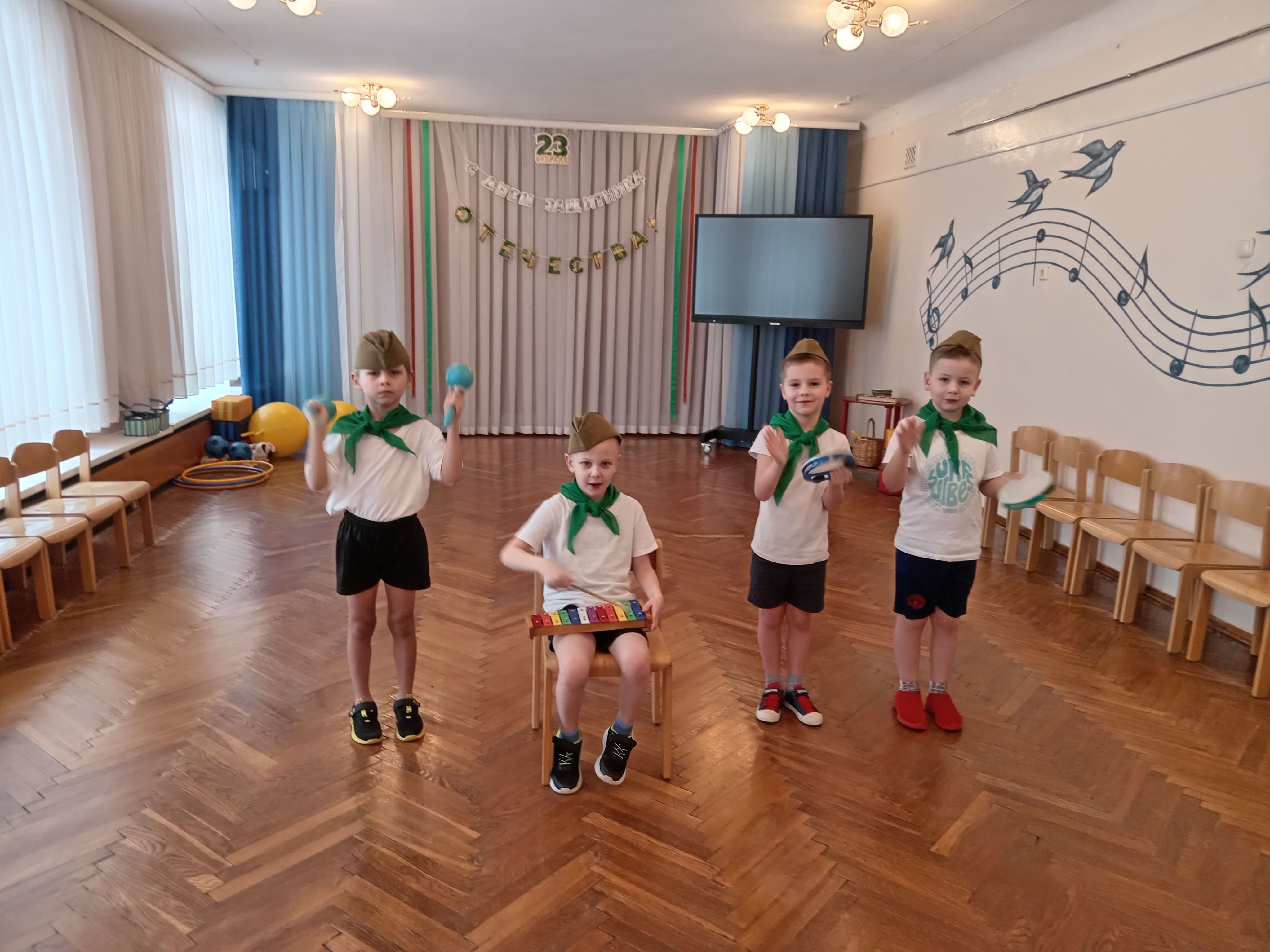 В преддверии Дня защитников Отечества и Вооруженных Сил Республики Беларусь в средней группе и группе интегрированного обучения и воспитания прошли музыкальные праздники. Воспитанники пели, танцевали, играли в игры, читали стихи о защитниках Родины. Все участники проявили активность, подарили друг другу хорошее настроение, радость общения и улыбки.