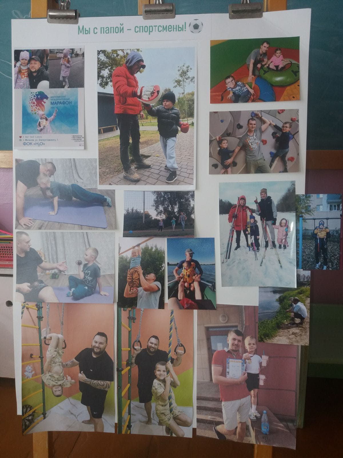 21 октября в нашей стране отмечался День отца. В учреждении образования в старшей и средней группах к Дню отца были организованы фотовыставки на тему «Мы с папой – спортсмены». Родители воспитанников приняли в этом активное участие, предоставив замечательные фотографии. Главными героями фотовыставки стали любящие папы со своими детьми. И дети, и взрослые с большим интересом рассматривали фотографии на выставке, дети рассказывали друг другу о своих фотографиях, чем они с папой занимаются: играют в футбол, подтягиваются на турнике, отжимаются, занимаются дома в спортивном уголке. Быть отцом – это гордость! И конечно каждый ребенок хочет гордиться своим папой. Это в определенной степени удалость реализовать благодаря.
