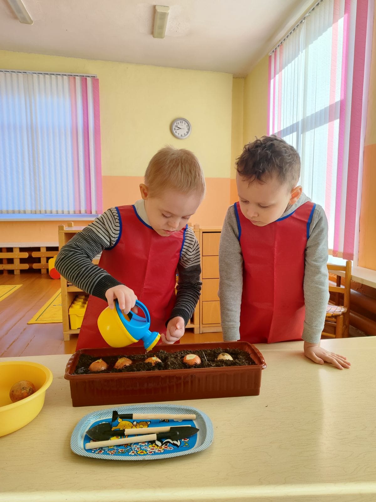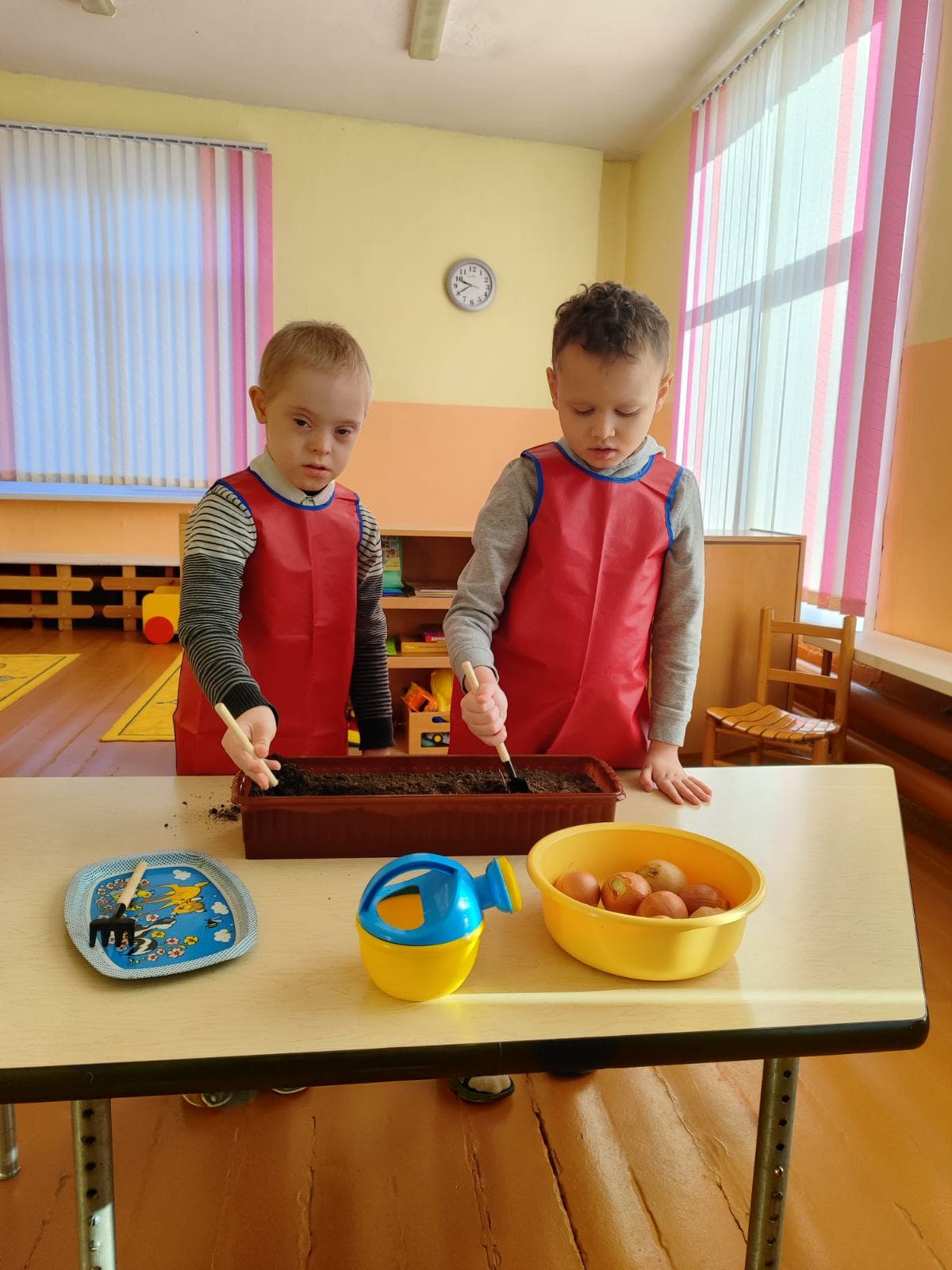 С целью расширения представлений воспитанников с ОПФР о луке, его свойствах, полезных качествах и алгоритме посадки была организована трудовая деятельность по посадке лука.