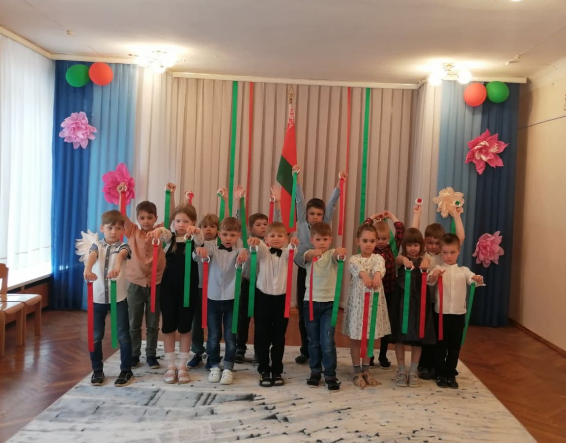 10 мая 2024 года в учреждении дошкольного образования для детей старшего дошкольного возраста состоялась торжественная линейка, посвященная «Дню Государственного флага, Государственного герба и Государственного гимна Республики Беларусь». Линейка началась с исполнения гимна Республики Беларусь. Ребята во время праздника исполнили стихи о гербе, флаге и Родине, пели песни о Беларуси, танцевали. Проведение праздника в торжественной атмосфере способствовало расширению представлений воспитанников о главных символах нашей страны, воспитанию чувства патриотизма, уважительного отношения к своей Родине.