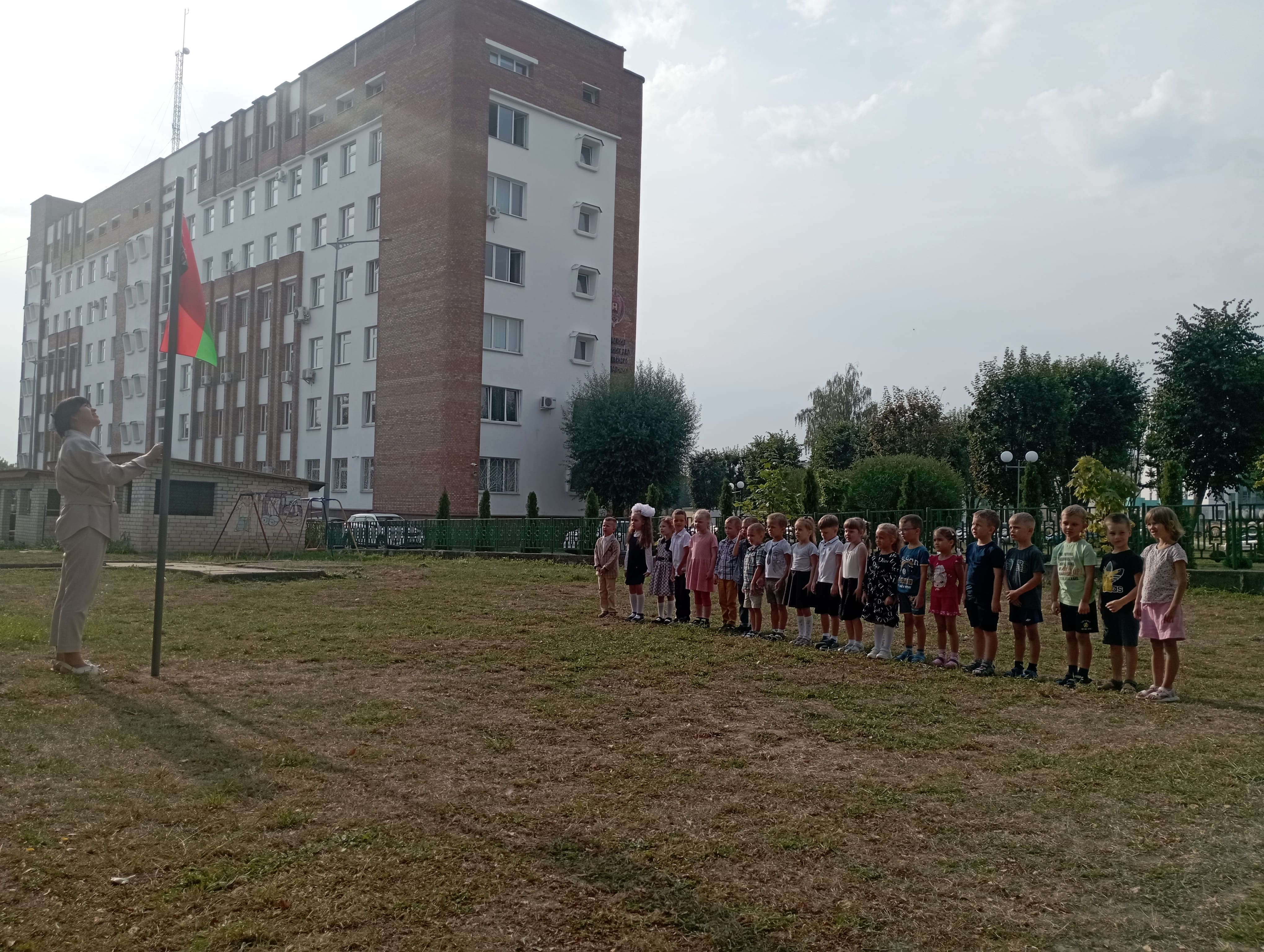 2 сентября в учреждении дошкольного образования состоялась торжественная линейка, посвященная Дню знаний. Началось она с исполнения Государственного Гимна Республики Беларусь детьми старшего дошкольного возраста и поднятия Государственного флага на площадке детского сада. Затем воспитанники продолжили празднование в музыкальном зале, где была создана радостная и доброжелательная атмосфера. Ребята не только пели, танцевали, участвовали в конкурсах, но и продемонстрировали свои знания сказок, умение считать и придумывать слова на заданные буквы. На мероприятии была создана положительная мотивация к получению определенных знаний и умений, которые пригодятся ребятам в школе.
